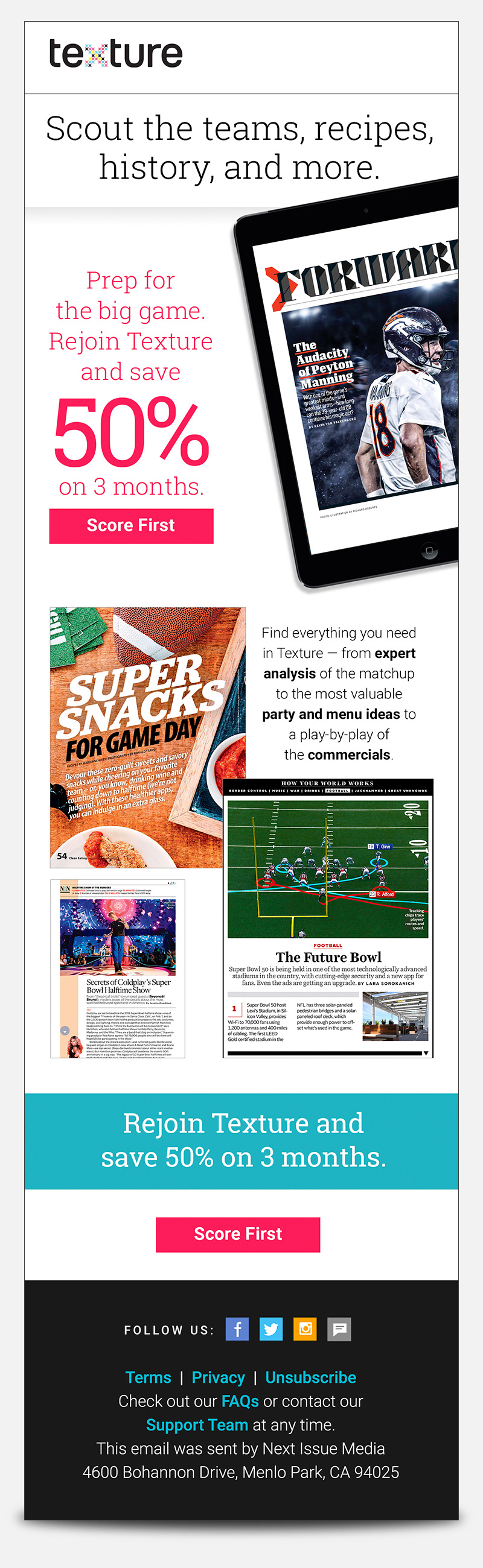 Emails are based on templates designed by the Associate Creative Director. I chose the imagery appropriate to the theme.